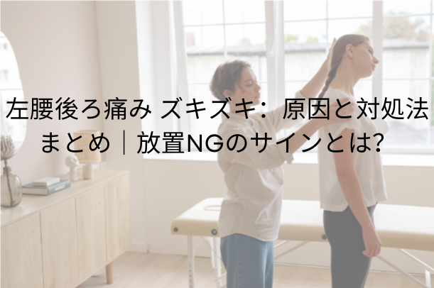 #左腰後ろ痛み #ズキズキ #腰痛原因 #セルフケア #来院目安
